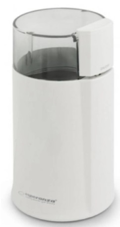 Risnita de cafea el. Esperanza Espresso EKC001W white Механизм измельчения ротационный нож Вместимость 50 г Мощность 160 Вт Материал корпуса пластик Цвет белый Длина сетевого шнура 0.9 м Габариты 18x8.5 см Вес 0.5 кг Производитель Esperanza