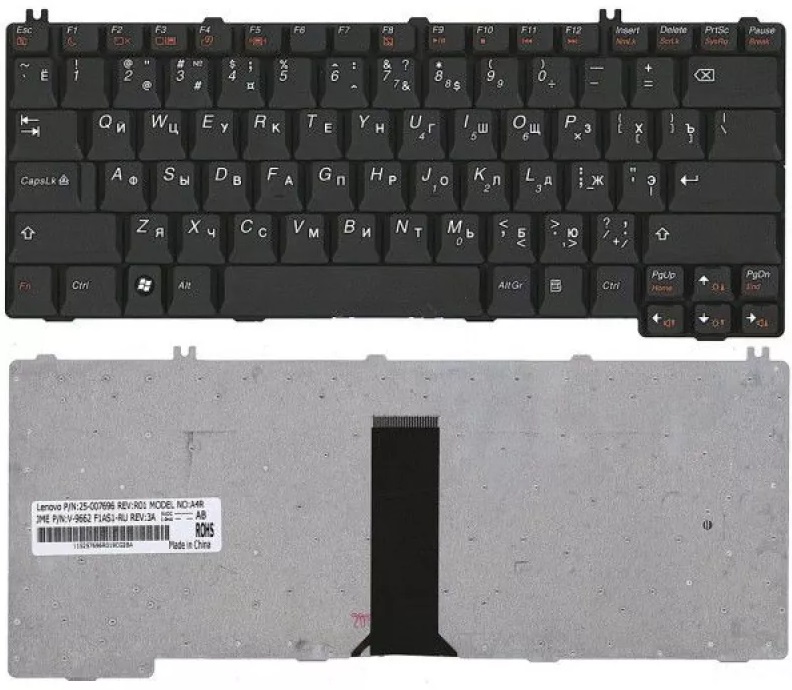 Keyboard Lenovo G530 N500 C100 C200 C460 C461 C462 C466 N100 N200 N220 N430 N440 G230 G430 G450 G455 V100 V200 Y310 Y330 Y410 Y430 Y510 Y520 Y530 Y710 Y730 ENG/RU Black