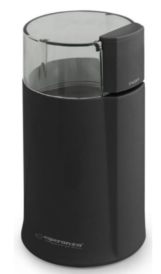 Risnita de cafea el. Esperanza Espresso EKC001K black Механизм измельчения ротационный нож Вместимость 50 г Мощность 160 Вт Материал корпуса пластик Цвет чёрный Длина сетевого шнура 0.9 м Габариты 18x8.5 см Вес 0.55 кг Страна производства Китай Особенности и функции импульсный режим Производитель Esperanza