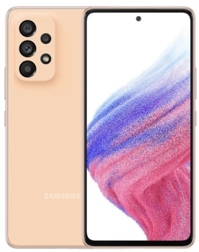 Samsung Galaxy A53 6/128 peach Операционная система: Android 12, One UI 4.1 Чипсет: Exynos 1280 (5 nm) Количество ядер: 8 Разрешение экрана: 1080 x 2400 пкс Встроенная память: 128 Гб Оперативная память: 6 Гб Аккумулятор: 5000 мАч Количество SIM: 2 4G (LTE): 5G Камера: 64 Мп Фронтальная камера: 32 Мп Слот для карты памяти: есть Особенности: Camera Quad: 64MP + 12MP + 5MP + 5MP