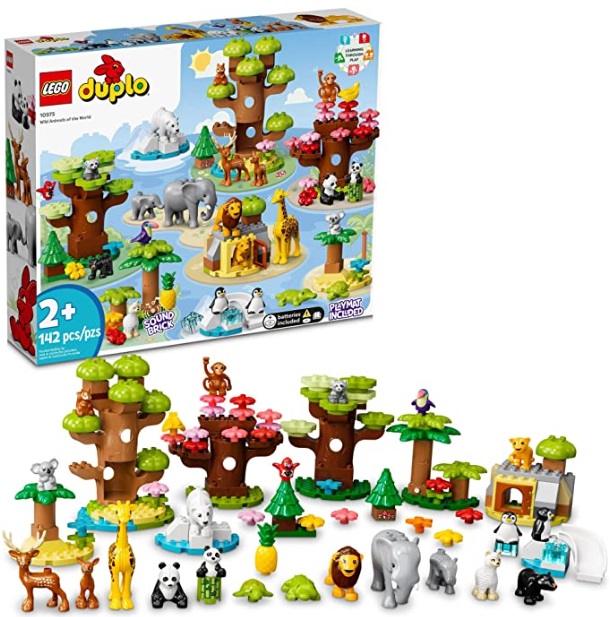 Конструктор Lego Duplo 10975 Wild Animals Of The World Возраст: 2 - 3 года Для: Всех Lego Duplo "Дикие животные со всего мира" Мир дикой природы, который могут исследовать юные любители животных! Дети, которые любят животных и природу, могут отправиться в путешествие по миру природы и познакомиться с животными со всех 7 континентов. Отправляйтесь с малышом в кругосветное путешествие по дикой природе, останавливаясь на всех 7 континентах! Они встретят панд в Азии, львов в Африке, оленей в Европе, альпак в Южной Америке, медведей в Северной Америке, коал в Австралии, пингвинов в Антарктиде и многих других! Прилагается блок со звуком, который воспроизводит звуки животных и окружающей среды, а также карта мира с игровым ковриком. Они делают комплект отличным подарком для детей, любящих природу. *Игровой коврик-карта 99 см в ширину и 50 см в глубину *Европейская секция 25 см в высоту, 20 см в ширину и 17 см в глубину Количество деталей: 140 Рекомендуемый возраст: от 2 лет Virsta: 2 - 3 ani Pentru: Ambisex Lego Duplo "Wild Animals of the World" O lume a vie?ii salbatice pe care sa o exploreze tinerii iubitori de animale! Copiii care iubesc animalele ?i natura pot face o excursie prin natura ?i pot intalni animale de pe toate cele 7 continente. Du-?i copilul intr-o aventura salbatica in jurul lumii, oprindu-te pe toate cele 7 continente! Vor intalni panda in Asia, lei in Africa, caprioare in Europa, alpaca in America de Sud, ur?i in America de Nord, koala in Australia, pinguini in Antarctica ?i multe altele! Setul vine cu o cutie de sunet care reda sunete de animale ?i de mediu ?i o harta a lumii cu saltea de joaca. Acesta este un cadou perfect pentru copiii care iubesc natura. *Covora? de joaca cu har?i 99 cm la?ime x 50 cm adancime *Sec?iunea europeana 25 cm inal?ime, 20 cm la?ime ?i 17 cm adancime Numar de piese: 140 Varsta recomandata: de la 2 ani