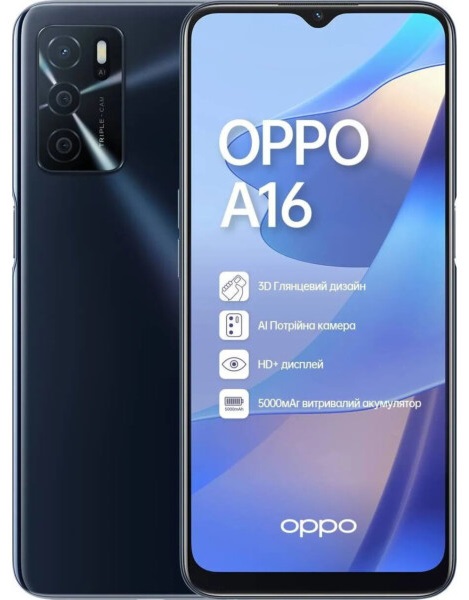 Смартфон OPPO A16 3/32GB Black Экран 6.52" (1600x720) IPS 60 Гц Встроенная память 32 ГБ Оперативная память 3 ГБ 3 камеры 13 МП, 2 МП, 2 МП Аккумулятор 5000 мА·ч Процессор MediaTek Helio G35 SIM-карты 2 (nano SIM) Операционная система Android 11 Беспроводные интерфейсы Bluetooth, Wi-Fi Стандарт связи 2G, 3G, 4G LTE Вес 190 г