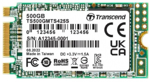 .M.2 SATA SSD 500GB Transcend TS500GMTS425S [42mm, R/W:530/480MB/s, 50K/75K IOPS, 180 TBW, 3DTLC]