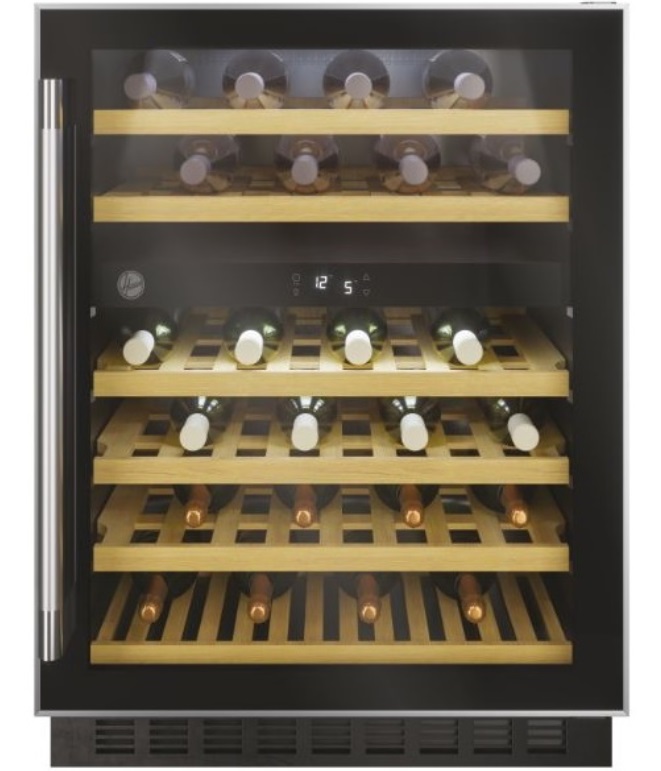 HOOVER HWCB 60/N Управление электронное Количество бутылок 46 Количество полок 6 Кол-во температурных зон 2 Материал полок дерево Климатический класс N LED подсветка да Уровень шума 39 Дб Годовое потребление энергии 145 кВтч Класс энергетической эффективности G Высота 813 мм Ширина 595 мм Глубина 575 мм Цвет чёрный Вес 50.3 кг Производитель Hoover