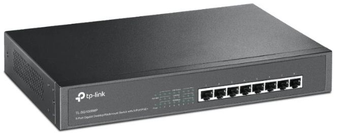 TP-LINKTL-SG1008MP,8-PortGigabitPoE+Switch,8GigabitRJ45portsincluding8PoE+ports,153WPoEPowersupply,Desktoporrackmounting