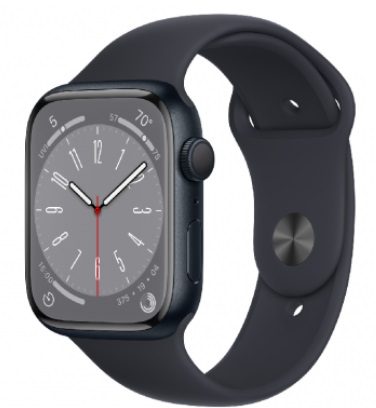 Apple Watch Series 8 GPS, 45mm Midnight Aluminium Case with Midnight Sport Band, MNP13