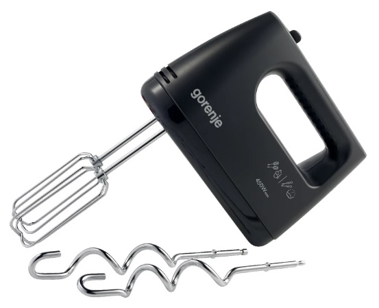 Mixer Gorenje M460CBK, 400W power output, 5 speed levels plus moment level/turbo level, 2x dough hook, 2x beater, bowl with volume of 2l, foot mixer rod