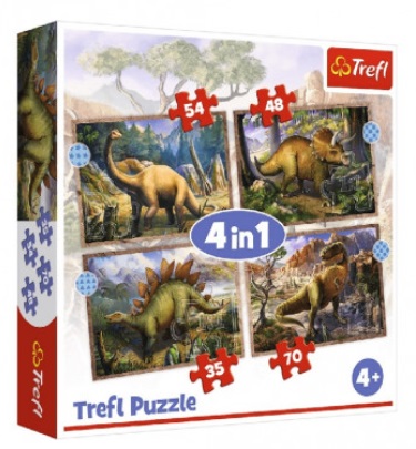Trefl 34383 Puzzles 4In1 Interesting Dinosaurs Virsta: 4+ Pentru: Ambisex Puzzle-ul TREFL 4 in1 "Dinozauri interesante" Puzzle-urile va vor ajuta sa petrece?i timpul distractiv alaturi de familie ?i prieteni! Elementele puzzle-ului sunt din carton gros de inalta calitate, se asambleaza u?or ?i sunt rezistente la decolorare. In set: 4 imagini cu 35, 48, 54 ?i 70 de piese. Varsta recomandata: de la 4 ani Возраст: 4+ Для: Всех Пазл TREFL 4 в 1 "Интересные динозавры" Пазлы помогут увлекательно провести время вместе с семьей и друзьями! Элементы изготовлены из качественного плотного картона, хорошо соединяются между собой и устойчивы к выцветанию. В наборе: 4 картинки на 35, 48, 54 и 70 деталей. Рекомендуемый возраст: от 4 лет