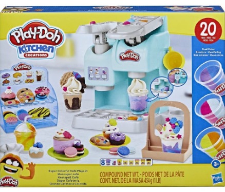 Play-Doh F5836 Super Colorful Cafe Playset Возраст: 3+ Для: Всех Play Doh - Цветой набор для кафе Проявите творческий подход в собственном игровом кафе! Приготовьте кофе, чай и другие красочные напитки, а так же испеките печенье, пончики, кексы и многое другое при помощи данного набора с формами и пластелином! Используйте игрушечную кофеварку и интересные дополнительных формы для изготовления лакомств, после чего разместите выпечку на подставке для пекарни, сделайте вкусный кофе или лимонад и ожидайте своих первых клиентов! В комплект входит: кофеварка, подставка для выпечки, подставка для кофе на вынос, 4 стаканчика, 2 крышки для напитков, 2 кружки, 2 блюдца, 8 дополнительных форм и 8 баночек с массой для лепки на 56 грамм (из которых 3 двухцветных). Рекомендуемый возраст: от 3 лет Virsta: 3+ Pentru: Ambisex PlayDoh - super colorful cafe playset Fii creativ in propria ta cafenea de joaca! Face?i cafea, ceai ?i alte bauturi colorate ?i coace?i prajituri, gogo?i, cupcakes ?i multe altele cu acest set cu forme ?i plastilina! Utiliza?i aparatul de cafea de jucarie ?i formele suplimentare distractive pentru a face delicii, apoi a?eza?i produsele de copt pe standul de panifica?ie, face?i cafea delicioasa sau limonada ?i a?tepta?i primii clien?i! Setul include: aparat de cafea, suport pentru copt, suport pentru cafea, 4 cesti, 2 capace pentru bauturi, 2 cani, 2 farfurioare, 8 forme suplimentare si 8 borcane cu plastelina de modelat de 56g (dintre care 3 sunt bicolore). Varsta recomandata: de la 3 ani
