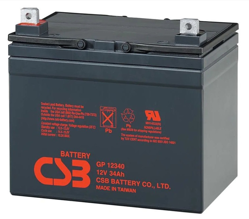 Baterie UPS 12V/ 34AH CSB GP 12340 Напряжение, В:12 Емкость, Ач:34 Технология:AGM Срок службы АКБ, лет:5 Тип клеммы:Ушко под болт+гайка M6 Тип аккумулятора:Стационарный Длина, мм.:195.6 Ширина, мм.:130 Высота, мм.:154.8 Полная высота, мм.:178.3 Вес, кг.:10.48