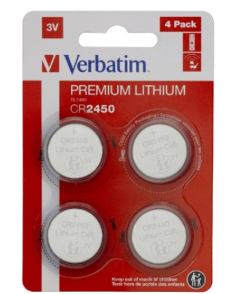 Verbatim® Batteries CR 2450 4pcs Blister 3 В вес изделия: около 6,2 г размеры: 24,1 x 5,0 мм в упаковке 4 шт.