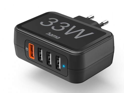 Hama 4 Ports Quick Charger, Qualcomm® 3.0, 4 x USB-A, 33 W, black