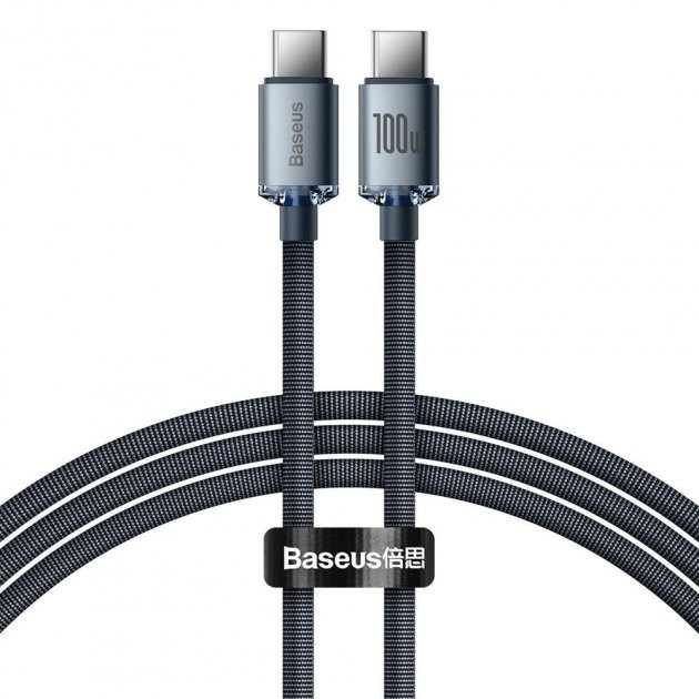 Cable Type-C - Type-C, Braided, 100W, 1.2m, Baseus Crystal Shine Black CAJY000601 подходит для всех устройств с разъемом Type-C; позволяет заряжать ноутбуки; максимальная сила тока: 5 А; максимальная мощность: 100 Вт; поддерживает быструю зарядку; скорость передачи данных: 480 Мбит/с; интеллектуальная система защиты; материал: алюминиевый сплав+тканевая оплетка; длина: 1,2 м.