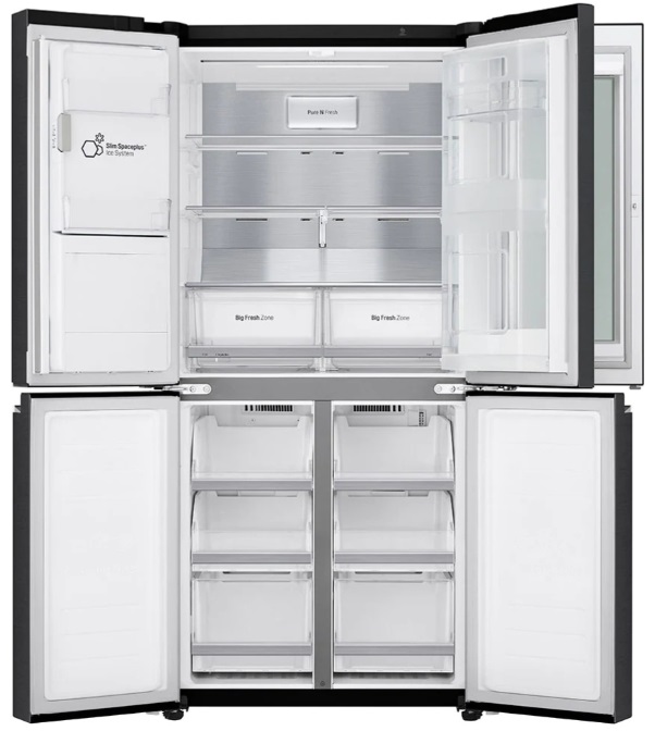 Холодильник SBS LG GMX844MC6F Tip instalare: Independenta Constructia frigiderului: Cu doua u?i Camere: Multizona Sistem dezghe?are frigider: Automata Sistem dezghe?are congelator: Automata Clasa de eficien?a energetica: F Тип French door Расположение морозильной камеры снизу Тип управления электронное Дисплей да Общий полезный объем 508 л Объем холодильного отделения 288 л Объем морозильного отделения 220 л Зона свежести да Диспенсер да Размораживание холодильной камеры No Frost Размораживание морозильной камеры No Frost Материал полок стекло Количество полок 3 Ящик для овощей и фруктов 2 Количество отделений в морозилке 6 Количество компрессоров 1 Инвертор да Класс энергоэффективности 03/2021 F Энергопотребление в год 393 кВтч Мощность замораживания 6.5 кг/cутки Автономное сохранение холода 10 ч Уровень шума 40 Дб Ручки скрытые Сигнaлизaция открытой двeрцы да Wi-Fi да Высота 178.7 см Ширина 83.5 см Глубина 73.4 см Цвет чёрный Вес 133 кг Производитель LG