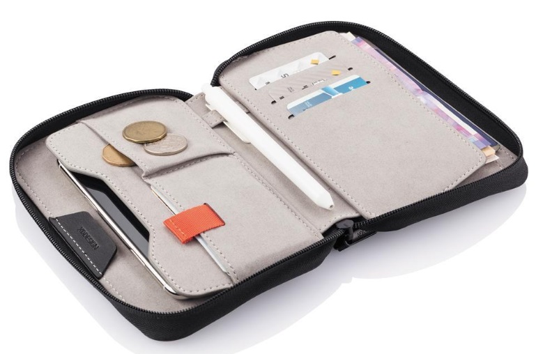 Passport Holder XD-Design, P705.821, Black Potrivit pentru telefoane mobile de pana la 5,5 " Inchideri magnetice Material: tereftalat de polietilen reciclat Dimensiunea produsului: 19 x 2,8 x 12,8 cm