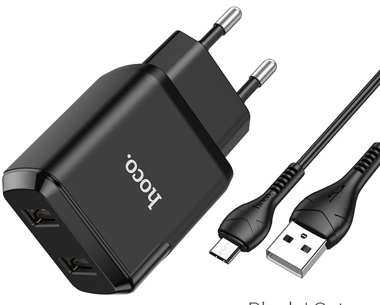 HOCO N7 Speedy dual port charger set Micro Black Материал: огнеупорный PC. Выход: общий выход 5V / 2.1A, выход одного порта 5V / 2.1A. EU штекер. Размер: 84*42*27мм. Вес: 36г. Вес набора с кабелем 50г. Набор с зарядным кабелем 1м