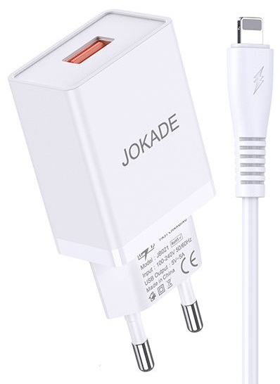 Jokade Wall Charger with Cable USB to Lightning Single Port 5A JB022, White .Jokade Wall Charger with Cable USB to Lightning Single Port 5A JB022, White
