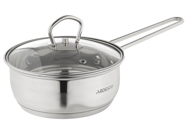 Ковш Ardesto Gemini Bari, стеклянная крышка, 1.2 л, нержавеющая сталь