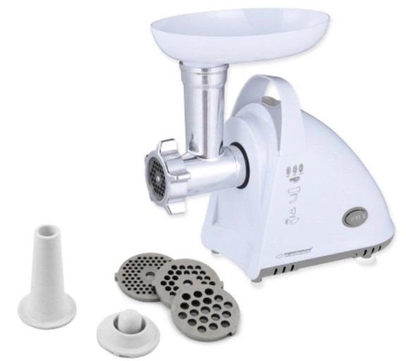 Мясорубка Esperanza MEATLOAF EKM031, 2200W strong engine, Stainless steel knife, Metal spiral drive, 3 discs (2,7mm, 4mm, 8mm), Forward and reverse function, Nozzle for making sausages, Nozzle for making kebbe, Product size: 32 * 15,8 * 30,3 cm Насадки Для колбасных изделий, Кеббе Цвет Белый Вес, кг 2.5