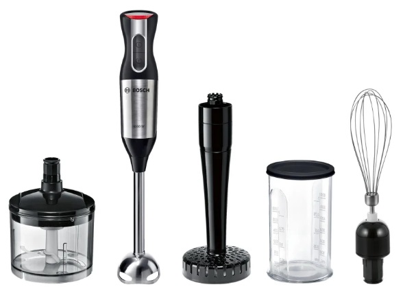 Блендер BOSCH MS6CM6155 Максимальная мощность: 1000 Вт Материал корпуса пластик Материал погружной части металл Количество скоростей 12 Управление механическое Насадки венчик для взбивания, для приготовления пюре, измельчитель В комплекте мерный стакан