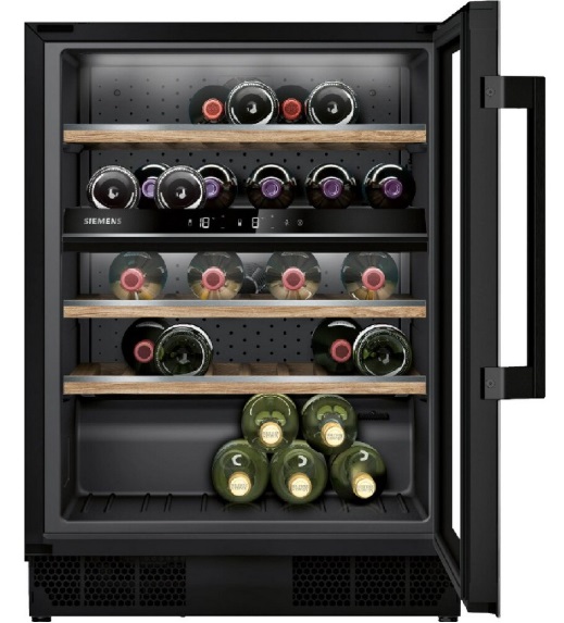 SIEMENS KU21WAHG0 Объем винной камеры 44 бутылки Класс энергопотребления G Освещение Есть Индикатор открытой двери Есть Диапазон температур (°C) от +5 до +20 Цвет Черный Уровень шума, дБ 38 Размеры (Д х Ш х В) (мм) 820x600x560