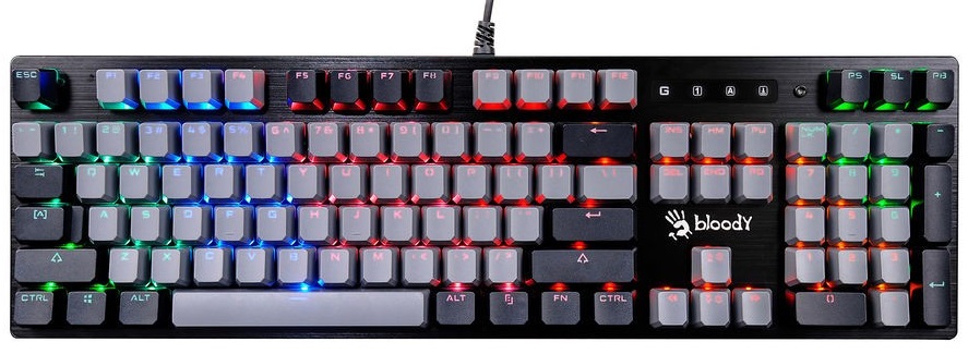 Gaming Keyboard Bloody B828N, Mechanical, Optical Blue Sw, Spill Resistant, Backlit, Grey/Black. Тип устройства: клавиатура Тип клавиатуры: оптическая Цифровой блок: да Подсветка клавиш клавиатуры: да Интерфейс подключения: USB