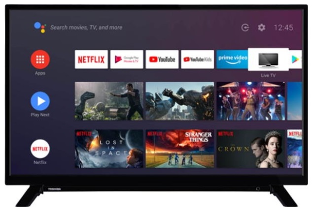 Телевизор 32" LED SMART TV TOSHIBA 32WA2063DG, 1368x768 HD, Android TV, Black 32" DLED, Black, 1368x768 HD, SMART TV (Android TV 11), TPQ 1000, Google Assistant, Chromecast, 3 HDMI, 2 USB, HDR10/HLG, DVB-T/T2/C/S2, VGA, Optical input, Headphone jack 3.5 mm Модель 32WA2063DG Диагональ 32" Разрешение 1366 x 768 (HD) Тип дисплея DLED