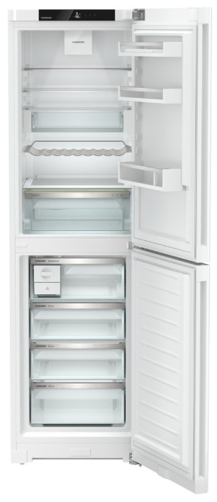 Холодильник Liebherr CNd 5724 Тип двухкамерный холодильник Расположение морозильной камеры снизу Тип управления электронное Дисплей да Общий полезный объем 348 л Объем холодильного отделения 225 л Объем морозильного отделения 123 л Размораживание холодильной камеры капельная система Размораживание морозильной камеры No Frost Материал полок стекло Количество полок 4 Полка для вина да Ящик для овощей и фруктов 1 Количество отделений в морозилке 4 Количество компрессоров 1 Класс энергоэффективности D Энергопотребление в год 230 кВтч Энергопотребление в сутки 0.628 кВтч/24 ч Автономное сохранение холода 24 ч Супер охлаждение да Суперзаморозка да Уровень шума 37 Дб Ручки скрытые Сигнaлизaция открытой двeрцы да Климатический класс SN-T Высота 201.5 см Ширина 59.7 см Глубина 67.5 см Цвет белый Вес 77 кг Производитель Liebherr