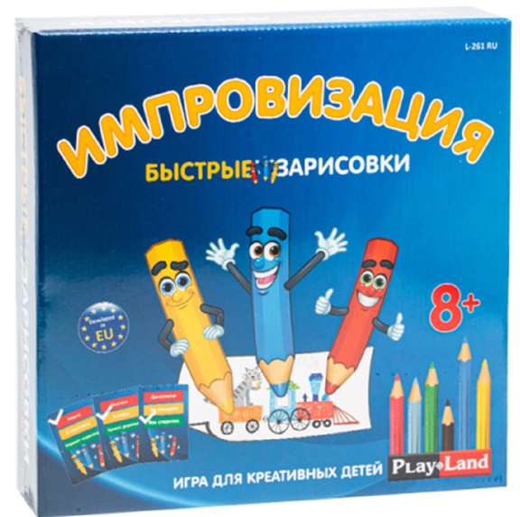 Play Land Joc de masa Improvizatie.Schite rapide L-261RU Игра воображения: Быстрые наброски Я представляю разные предметы, а ты проявляешь свои навыки рисования. Задания должны быть выполнены четко, чтобы другие игроки могли быстро узнать твои наброски. За каждое выполненное задание ты получаешь соответствующее количество очков. В наборе: 56 карт, рулетка, указатель, цветные карандаши, листы для рисования и правила игры.