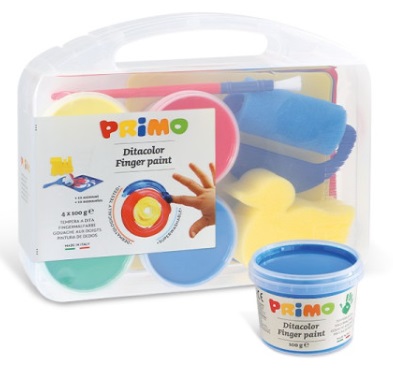 Vopsea pentru pictura cu degetele cu accesorii 4 culori / 100 ml Pentru copiii de la 3 ani, Primo a creat un set creativ minunat de 4 borcane de vopsele pentru degete care sunt complet inofensive pentru pielea copiilor, precum ?i o serie de accesorii care va ajuta copiii la desen. Intregul set vine intr-o cutie de plastic rece care con?ine: 4 borcane de vopsea pentru degete (100 ml fiecare); ?abloane; 1 tampon-burete sub forma de tren; 1 rola cu burete; 1 perie mare; substrat; Dimensiuni portofoliu 23 x 18 x 5,5 cm.