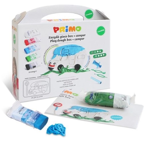 Set de pasta pentru modelare cu accesorii Rulota Acest set de pasta pentru modelare Primo Rulota este un set creativ, ideal pentru copiii cu varsta peste 3 ani ?i con?ine o varietate de accesorii pentru a le permite sa-?i creeze propria lor rulota cu ajutorul plastilinei. Setul con?ine 4 borcane cu pasta pentru modelare in culorile ro?u, galben, verde ?i albastru, fiecare borcan avand o greutate de 40 grame. Accesoriile includ ?abloane pentru a crea modele precum pere?i, acoperi?uri, u?i ?i ferestre, precum ?i instrumente de modelare precum sucitoare ?i roleuri. Toate accesoriile sunt realizate din materiale sigure ?i durabile. Acesta este un set excelent pentru a incuraja creativitatea ?i dezvoltarea abilita?ilor motorii fine ale copiilor, precum ?i pentru a-i inva?a despre camping ?i calatorii intr-un mod distractiv.