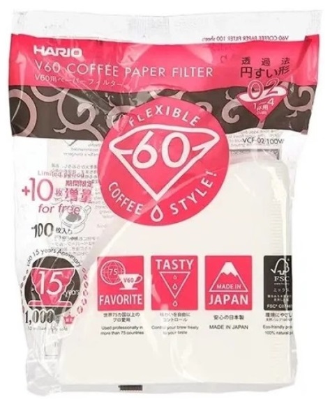 Hario VCF-02-100M+ Filtru din hartie maro pentru HARIO V60 - 02 - 100 buc Тип фильтр Назначение для кофе Материал бумага Цвет белый Производитель Hario