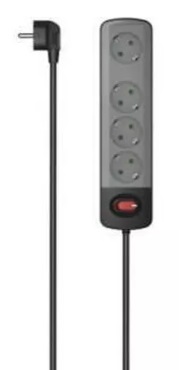 Hama 223053 Power Strip, 4-Way, Switch, Wall Mounting, 1.5 m, black/grey