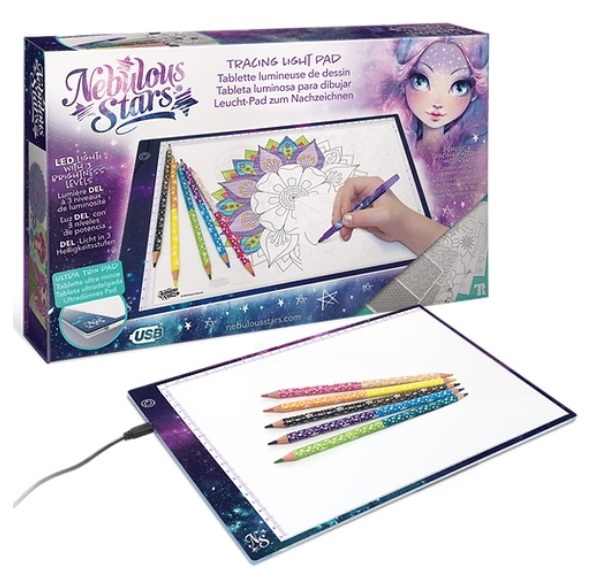 Nebulous Stars 11351 Tableta de desen Тип рисование Возраст от 7 лет Пол для девочек Комплектация планшет , USB-кабель , 5 двусторонних цветных карандашей , черная калька , примеры страниц шаблонов , 10 распечатанных копий , полная история Небулии , коробка для хранения Страна производитель Канада Габариты товара 45,5x7x29 см Питание USB Вес 1360 гр