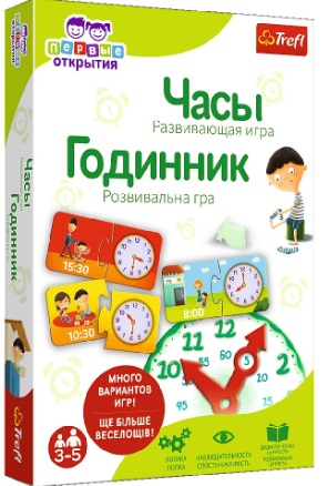 Trefl 2163 Game - Ceas RU UA Возраст: 3+ Для: Всех "Часы" - развивающая игра с карточками, которая в увлекательной форме учит определять время на часах в аналоговом и цифровом формате и сопоставлять различные события с соответствующим временем суток. В коробке: 16 пар карточек (часы + соответствующее событие) большие часы с движущимися стрелками, инструкция с предложениями по играм. Рекомендуемый возраст: от 3 лет
