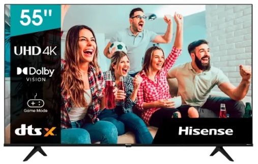 tv Hisense 55A6BG Диагональ дисплея: 55 " Разрешение экрана: 3840x2160 4K UHD Тип панели: IPS Тип подсветки: DLED Дистанционное управление: Smart Платформа программного обеспечения: VIDAA U OS Wi-Fi: Wi-Fi 802.11 b/g/n Встроенные динамики: 2x 8 Вт USB Type-A: 2x USB 2.0