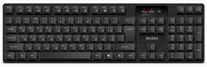 Wireless Keyboard SVEN KB-C2300W, 12 Fn keys, Splash proof, Battery indicator, 2.4Ghz, 2xAA, Black