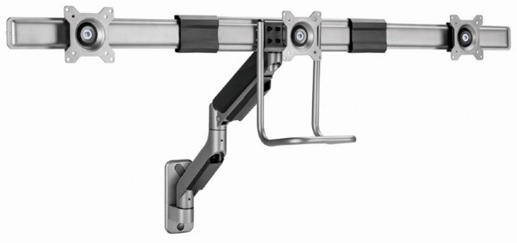 Monitor wall mount arm for 3 monitors up to 17-27" Gembird MA-WA3-01, Adjustable wall 3 display mounting arm (rotate, tilt, swivel), VESA 75/100, up to 6 kg, space grey Настенный кронштейн для 3 мониторов до 17-27" Gembird MA-WA3-01, регулируемый настенный кронштейн для 3 мониторов (вращение, наклон, поворот), VESA 75/100, до 6 кг, цвет серый