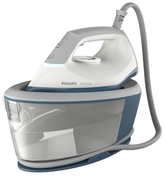 Ironing System Philips PSG2000/20 Материал подошвы: Керамика Потребляемая мощность: 2400 Вт Скорость подачи пара: 110 г/мин Расход при паровом ударе: 300 г/мин Объём резервуара для воды: 1400 мл Автоматическое отключение Защита от накипи Противокапельная система Вертикальное отпаривание
