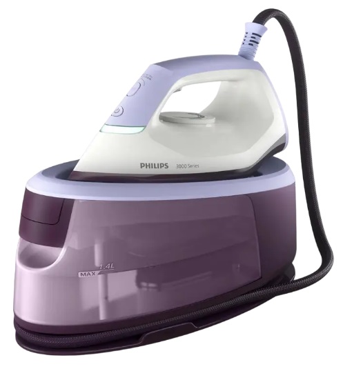 Ironing System Philips PSG3000/30 Материал подошвы: Керамика Потребляемая мощность: 2400 Вт Скорость подачи пара: 110 г/мин Расход при паровом ударе: 300 г/мин Объём резервуара для воды: 1400 мл Автоматическое отключение Защита от накипи Противокапельная система Вертикальное отпаривание
