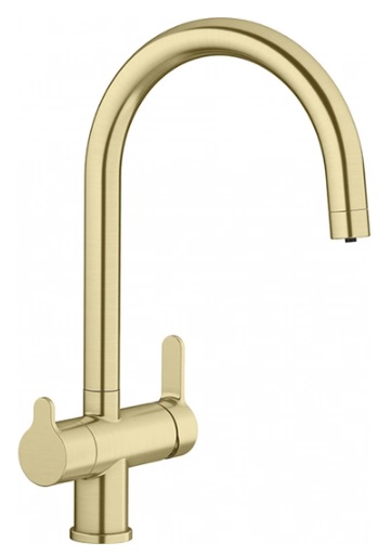 смеситель BLANCO Trima ( 526695 ) Бренд: Blanco Тип: Смеситель для кухонной мойки Серия: TRIMA Принцип смешивания воды: двухрычажный Тип конструкции (для однорычажного и джойстикового): керамический Способ монтажа: на горизонтальную поверхность Количество и диаметр необходимых отверстий для установки: 1 (35 мм) Угол поворота излива, град. 360 Выдвижной излив (гибкий): нет Аэратор в изливе (тип): есть Цвет: золотой Тип подвода труб: гибкая Высота излива, см: 37,2 Высота струи, см: 22,5 Длина излива (гуся), см: 20,45