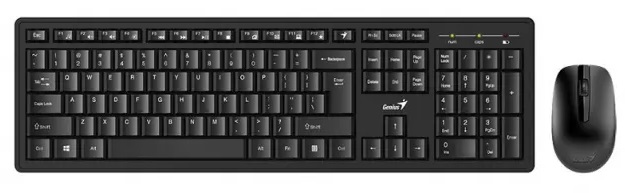 Wireless Keyboard & Mouse Genius KM-8200, 12 Fn keys, Spill resistant, Chocolate keycap, 1000dpi, 3 buttons, 1xAAA/1xAA, 2.4Ghz, EN/RU, Black/Grey Вид: Полноразмерная Тип: Мембранная В комплекте с мышью: Есть Количество кнопок: 104 клавиш(-и) Интерфейс подключения: Wireless Особенности: Водостойкая