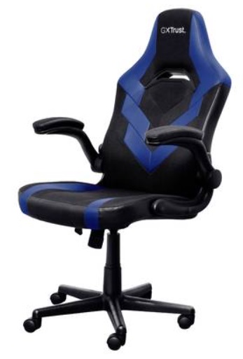 Trust Gaming Chair GXT 703B RIYE - Black/Blue, PU leather and breathable fabric, adjustable gaming chair with a strong frame, flip-up armrests, Class 4 gas lift, up to 140kg