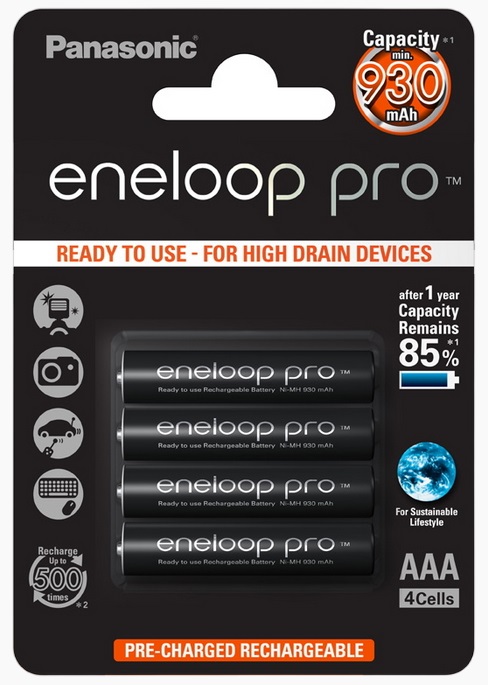 AAA Eneloop PRO 930mAh, Blister*4, Panasonic, BK-4HCDE/4CP
