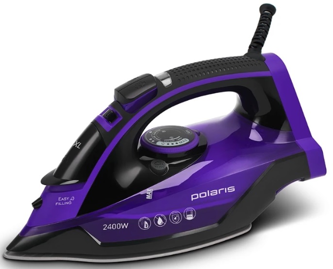 Iron Polaris PIR 2415K Мощность 2400 Вт Материал подошвы керамическая Подошва утюга PRO 5 Ceramic Постоянная подача пара 50 г/мин Паровой удар 145 г/мин Вертикальный пар да Распылитель воды да Функция "Капля-стоп" да Емкость резервуара для воды 350 мл Функция самоочистки да Защита от накипи да Шаровое крепление шнура да Длина шнура питания 1.8 м Цвет фиолетовый Вес 1.2 кг Производитель Polaris