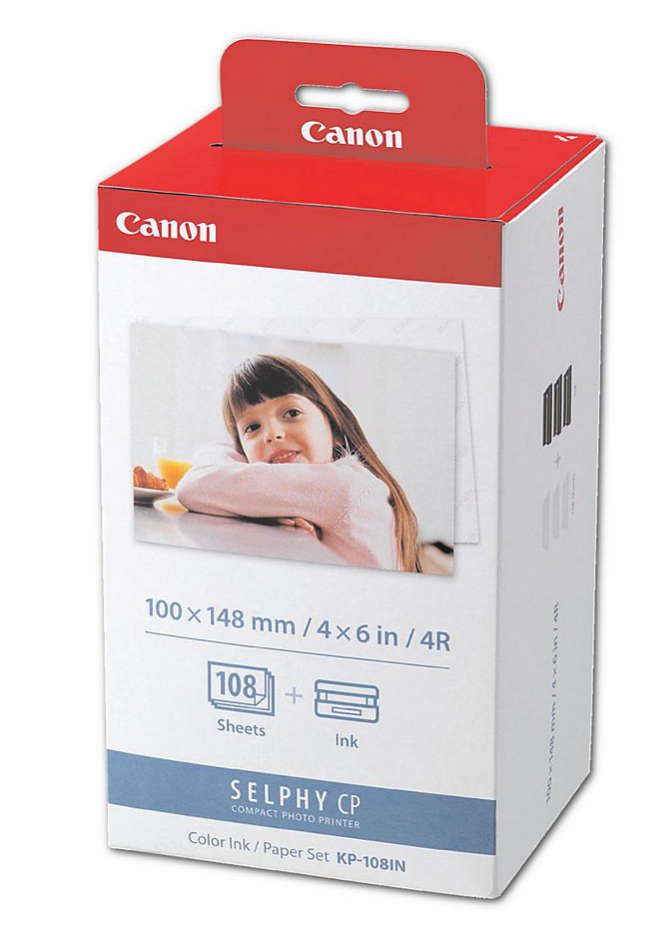 Нужно срочно распечатать фотографии с прошлой вечеринки или прошедшего отпуска, а картридж в принтере, как назло, закончился? В таком случае набор для фотопечати Canon KP-108IN вам просто необходим. Ведь внутри коробки находится фотобумага (108 листов формата 10х15 см) и картридж, которые совместимы со всеми принтерами серии Selphy CP. Буквально за считанные минуты вы получите красивые и качественные фотографии. Основные Модель: серия Selphy CP Тип расходника: картридж Тип печати: сублимационная