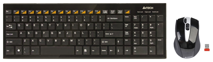 A4Tech Kit RF 9500H Keyboard (GX-100), X-Structure-Multimedia, 12-Hot Keys, UltraRange - 15m, 2.4GHz & RF G9-500H Holeless Mouse, 2000dpi, 4D-Wheel, 1