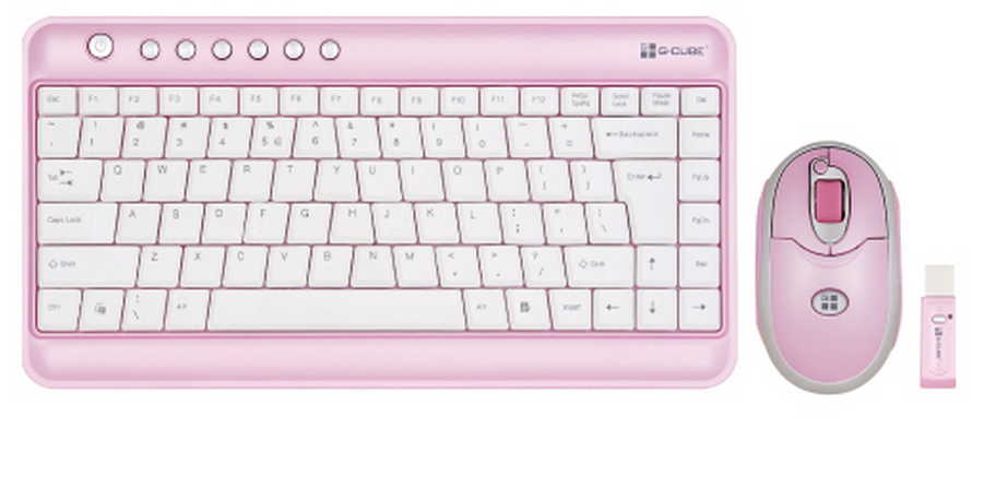 Общие характеристики Комплектация клавиатура + мышь Назначение настольный компьютер Тип беспроводной связи радиоканал Радиус действия беспроводной связи 1.5 м Интерфейс подключения USB Цвет несколько цветов Трекбол нет Клавиатура Конструкция ромбическая (Anti RSI) Цифровой блок нет Тип мембранная Беспроводная связь есть Количество клавиш 93 Количество дополнительных клавиш 7 Возможность шифрования данных есть Источник питания клавиатуры 2xAA Размеры (ШxВxГ) 360x30x170 мм Мышь Тип оптическая лазерная Беспроводная связь есть Дизайн для правой руки Колесо прокрутки есть Количество клавиш 7 Разрешение оптического сенсора 1000 dpi Источник питания мыши 2xAAA G-Cube Kit RF Keyboard GRKST-520C TravleTini Pink 6-Hot Keys, UltraRange - 10m, 2.4GHz, Headset&USB2.0 - Extension port & RF 2xClick, 1000dpi