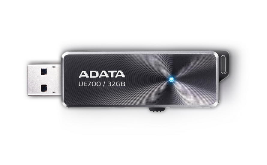 Флешка ADATA, Dash Drive Elite UE700, 32 Gb USB3.0, black (Read-190MB/s, Write-50MB/s), Retractable USB ADATA DashDrive Elite UE700 32GB - это стильный, компактный и производительный накопитель, который позволит вам значительно расширить свои возможности в области обмена данными между различными устройствами. Эта флешка позволяет быстро передавать большое количество информации, от документов и фотографий до музыки и фильмов. Высокая скорость, внушительный объем и надежность хранения информации позволяют использовать накопитель как временное, так и небольшое постоянное хранилище данных. ADATA DashDrive Elite UE700 32GB совместим со всеми современными операционными системами. Материал корпуса: Mеталл Водонепроницаемый корпус: Hет Особенности: Выдвижной разъем, Индикатор передачи данных Толщина: 7 мм Ширина: 21 мм Длина: 63 мм Вес: 11 г Скорость записи данных: 50 MB/s Объем памяти: 32 GB Скорость чтения данных: 190 MB/s Поддержка ОС: Windows 2000/XP/Vista/7, Mac OS ReadyBoost: Hет Интерфейс: USB 3.0