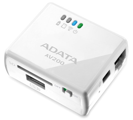 Card reader ADATA DashDrive Air AV200, Wireless AP for SD(HC)/MMC, 802.11 b/g/n, RJ45, Powered by power adapter DC 5V or miniUSB host for BatteryRecha Категория Кард-ридеры Совместимость iOS Android Windows MacOS X Linux Дополнительные характеристики Сертификат: FCC / CE Беспроводной стандарт: Wi-Fi 802.11b/g/n Mini-USB Port (для подключения к ПК/зарядки) RJ45 (WAN-Port) Поддержка карт памяти SD / MMC Аккумулятор: 1100 мАч 3 часа работы от аккумулятора Размеры: 50 x 25 х 60 мм Вес: 55 г Цвет White
